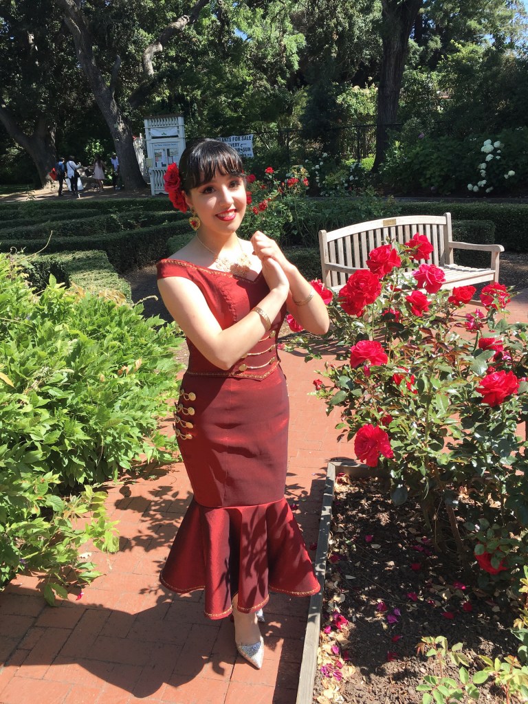 By the time Elena was in high school, her interest in creating clothes for herself was at an all time high. The first garment she ever made was a strapless dress for her Senior Project. The Senior Project required all seniors at her high school to work with a mentor to learn a new skill. After learning that new skill, a final paper would have to be submitted. By this time, Elena was confident using the sewing machine, but didn’t know how to make a pattern and put it all together. Her mentor was a tailor who made men’s pants. Pattern making has been a skill she has continued to use ever since.