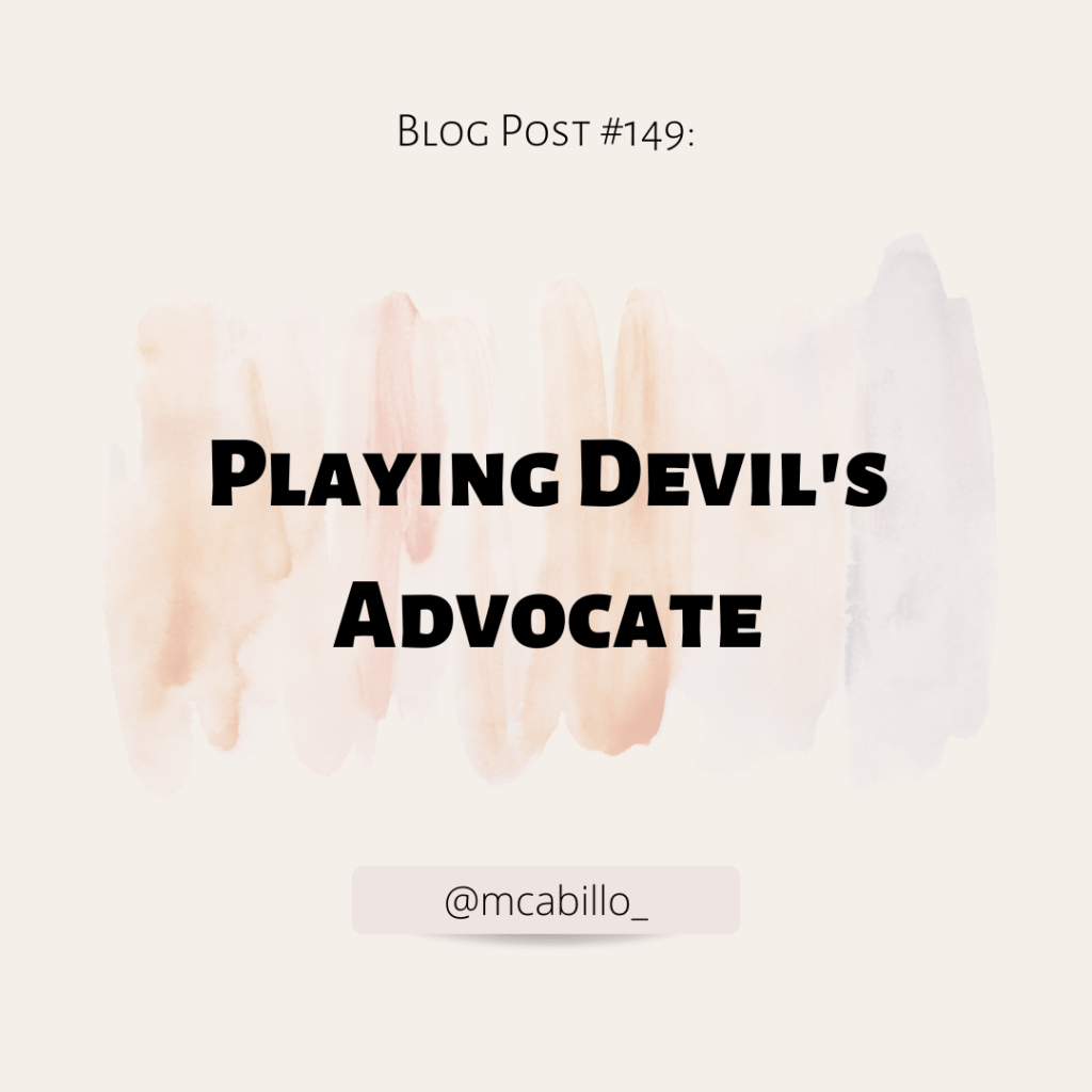 One of my best and worst quality is the ability to play devil’s advocate. It’s a blessing and a curse to see someone else’s perspective. After all, putting ourselves in someone else’s shoes is something taught to us early on to teach empathy. Being empathetic and trying to understand people’s experiences, lives, and point of view is a gift on its own. However, it can also be your biggest downfall.