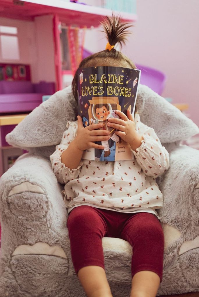 Maria was inspired to make a book that anyone could relate to. She believes all children are unique and special just as they are, and shouldn’t be defined by labels. Right off the bat, Maria knew she didn’t want to label her main character to put them in a box, so instead, she created a character that liked to play outside the box, literally. In her book, “Blaine Loves Boxes,” Blaine is just a kid who loves boxes, anyone can relate to his character, but the reader can also see what makes him his own person. Blaine is unique in his own way and connects to the world around him through playing with boxes.