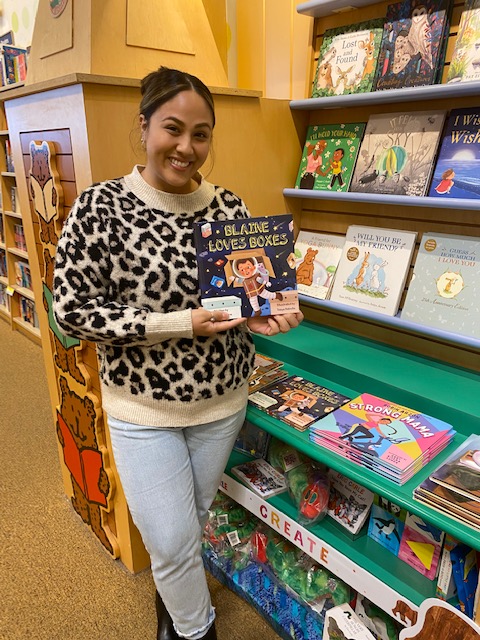 Now “Blaine Loves Boxes” can be found in certain big name stores like Target and Barnes & Nobles, as well as other local stores. Years before her writing process, Maria always envisioned herself walking into a local bookstore and seeing her book on the shelf. This is a dream that intensified as she began her official writing process for the book. Even if she saw just 1 copy of her book at 1 local store, she would be ecstatic. Maria describes seeing her book in stores as one of the best feelings ever, especially since she gets to share this moment with her daughters.